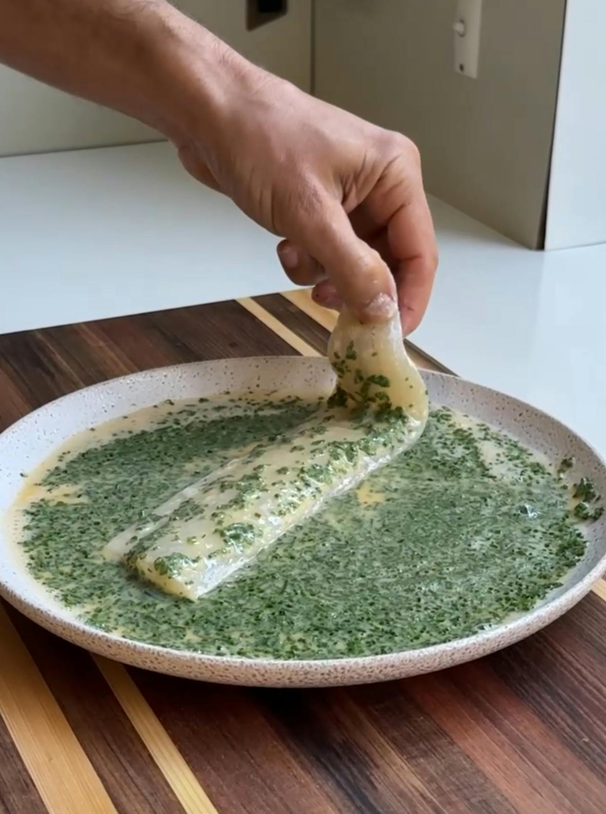 I use the GoodFish app or website when selecting fish to ensure sustainability. In this dish I used the beautiful King George Whiting, which is on the green list with GoodFish.