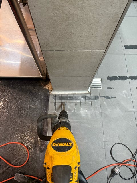 Locate the burst hot-water pipe buried in the kitchen floor slab. The sound of water running, even when all the taps are off, should be a warning sign. Be a pro like me and use a digital thermometer to locate it. Yep, its hot right there, where it shouldn’t be.