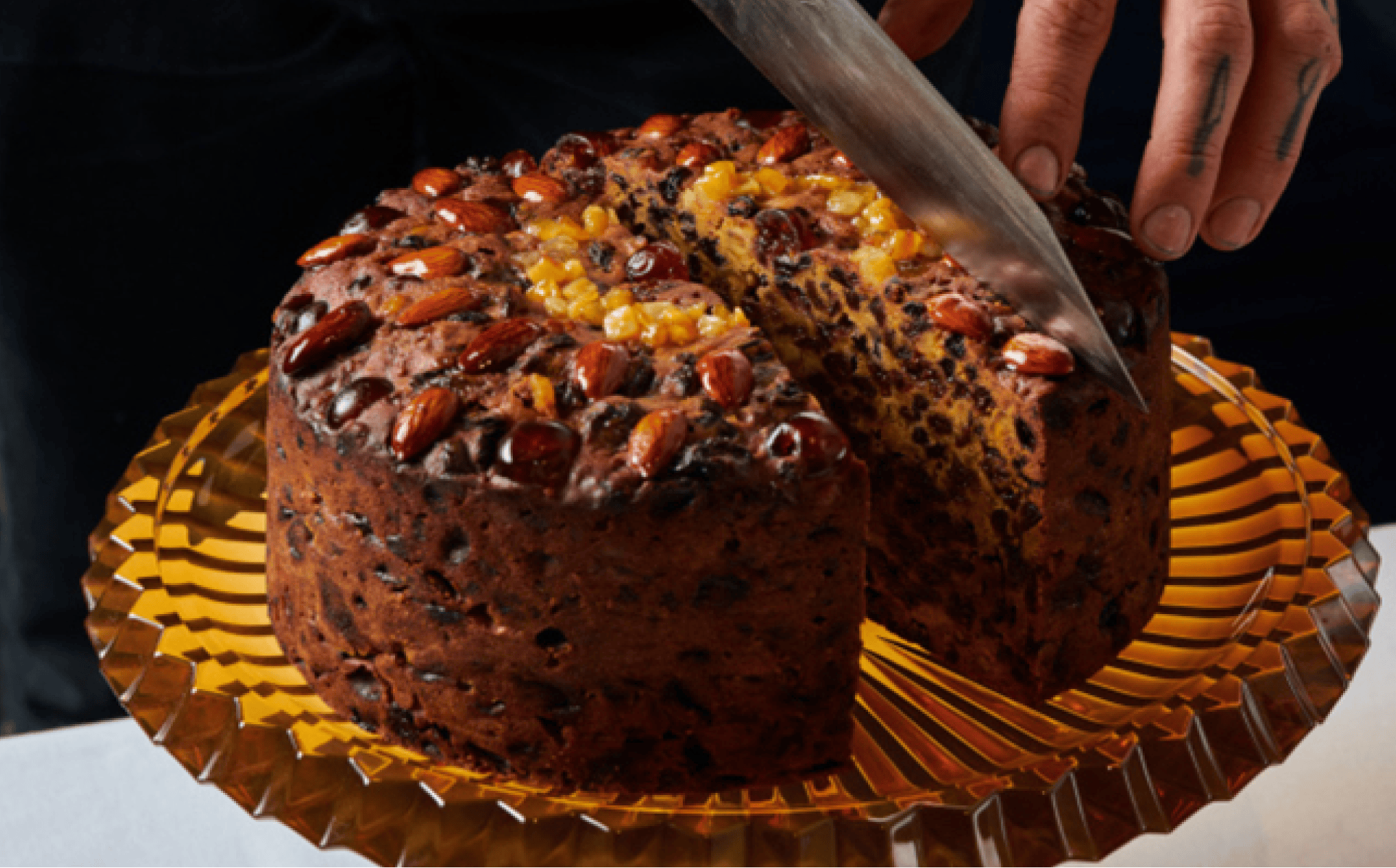 Now, many years later, Ben has perfected his own interpretation of a fruity, nutty, cake that’s full of Christmas spirit(s).